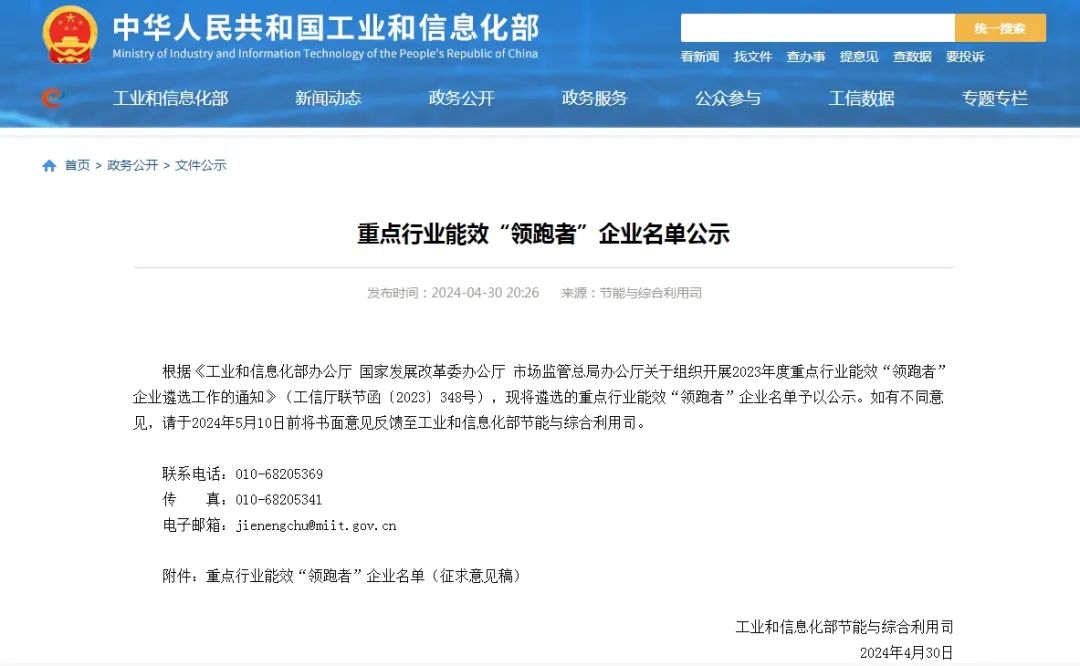 據悉,重點行業能效“領跑者”制度是國家確定實施的一項重要節能政策,旨在通過發布同類可比范圍內能源利用效率最高的產品、企業或單位名單,樹立標桿、政策激勵、提高標準,形成推動終端用能產品和用能單位能效水平不斷提升的長效機制,對增強全社會節能減排動力具有重要意義。本次發布的名單共有30個重點工業領域的80家企業上榜。