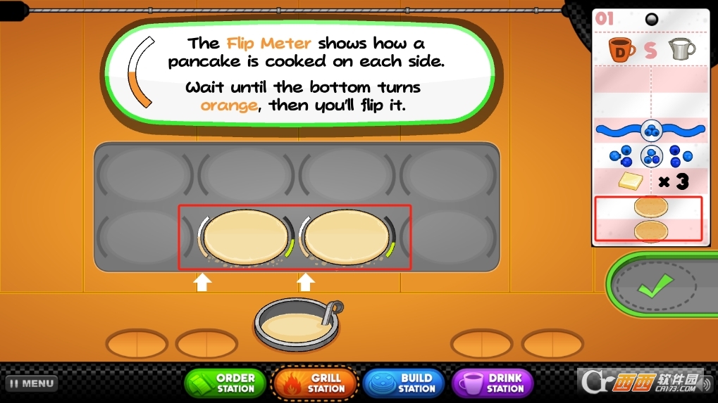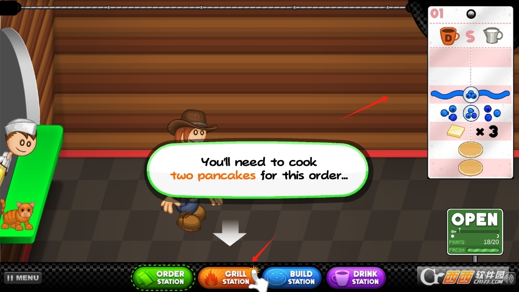 玩家將扮演煎餅店店員,老爹負(fù)責(zé)接待顧客、煎餅制作煎餅、文版收款等全流程操作。下載顧客會(huì)點(diǎn)不同口味的老爹煎餅,比如加藍(lán)莓的煎餅、抹巧克力醬的文版,需要按要求搭配食材,控制煎制時(shí)間,確保煎餅熟透且符合顧客口味。