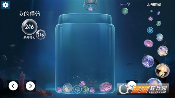 簡單操作功能:游戲操作極為便捷,玩家只需通過點擊或拖拽屏幕,就能輕松控制水母的移動。左下角設有兩個按鍵,可精準控制水母的左右移動方向,右下角的按鍵則用于讓水母掉落至合適的位置。這種簡單易懂的操作方式,使得無論新老玩家,都能迅速上手,沉浸在合成水母的樂趣之中。