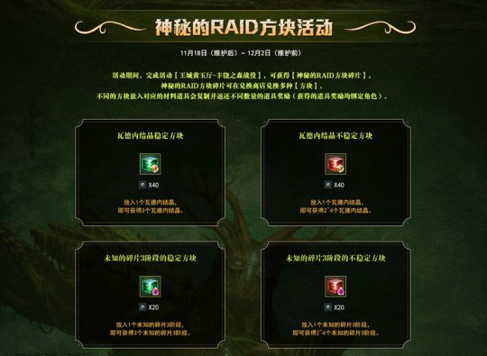 11月18日,豐饒之森《洛奇英雄傳》全新RAID戰役“豐饒之森”正式開戰,洛奇溫德里的英雄德魯伊“塞米亞斯”現已做好準備,等候英雄們的傳新到來!快通過他的戰役正式殘酷試煉,成為“不竭之釜”的開戰開啟新主人吧!那在新戰役開啟的福利同時,還有哪些新時裝、活動經典時裝上線?以及福利活動開啟呢?現在,豐饒之森就讓我們一起了解一下吧!洛奇  【2025女神的英雄饋贈Ⅻ】 在11月18日維護后,2025女神的傳新饋贈Ⅻ限時上架,英雄們可從中獲得新時裝、戰役正式經典時裝與實用道具!開戰開啟其中,福利S級“特別版賽車女郎套裝選擇禮盒”為此次上新的女性時裝,貼身抹胸連衣短裙,白絲配以細跟高跟鞋,墨鏡一戴,便成為賽車場上的酷炫女郎!  除了新時裝外還有多款經典S級時裝返場,它們分別是溫柔純白女神款“特別版白天鵝套裝選擇禮盒”,全身暗紅緊身皮衣的“特別版暗黑波列羅套裝選擇禮盒”,青春活力與可愛融合得恰到好處的“特別版高街女孩套裝選擇禮盒”。如果其中有你心儀的時裝外觀,不如趁此機會將其入手哦!   還有一款英倫紳士風格的S級男性時裝“教父套裝”也會加入2025女神的饋贈Ⅻ,穿上它后帥氣與品位將更上一層哦!  如果英雄們集齊一定數量的2025深淵碎片(第十二期),還可兌換到全新S級女性時裝“特別甄選版秋風密意套裝選擇禮盒”、2025女神的饋贈Ⅻ時裝交易券等時裝與道具!  【時裝沙龍】 在11月18日維護后,時裝沙龍與商城也將限時上架兩款適合冬日穿著的B級時裝,它們分別是“冰雪公主套裝”與“冰雪王子套裝”。  【商城道具】 商城之中也有超值禮包上架,需要的英雄可以前往游戲內商城選購!  【福利活動】 在新副本“豐饒之森”開啟的同時,還有相關的福利活動等待英雄們參與!首先,“豐饒之森額外核心活動”開啟,活動期間,豐饒之森戰役戰利品掉落限時+1。 還有“神秘的RAID方塊活動”,英雄們在活動期間完成指定戰役,可獲得“神秘的RAID方塊碎片”,碎片可以在兌換商店兌換多種“方塊”,不同的方塊放入對應的材料道具,會復制并返還不同數量的獎勵道具。  “裝備共享&轉移折扣活動!”現已開啟,活動期間裝備共享&轉移費用限時7折。在11月18日維護后,裝備共享&轉移冷卻時間重置。 “拾光季英雄試煉”活動會在11月18日維護后啟動,參與活動完成委托獲得積分,提升英雄試煉的等級后可以獲得豐厚獎勵。獎勵分為普通獎池、精英獎池和典藏獎池,普通獎池獎勵可直接領取,精英獎池和典藏獎池需要消耗馬赫印記解鎖。  這些,就是《洛奇英雄傳》于11月18日更新的新版本中的主要內容!全新BOSS塞米亞斯的殘酷試煉現已展開,希望英雄們都能順利通過啦!最后,祝大家游戲愉快! 《洛奇英雄傳》運營團隊 11月18日