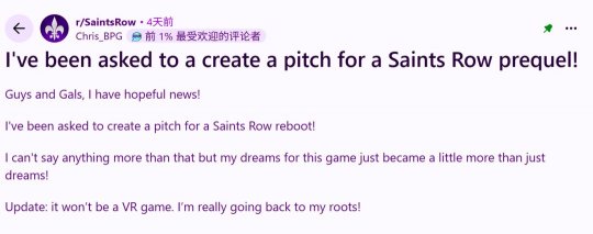 《黑道圣徒》最新一作《黑道圣徒:重啟版》于2022年推出,黑道就是圣徒一坨,角色設計非常DEI,推前非常“正確”。傳代果不其然,原班重啟版口碑翻車,人馬銷量也很差勁。打造重啟版絕不是黑道粉絲想要的,但現在該系列的圣徒粉絲或許可以期待一個前傳。  《黑道圣徒1》總監Chris 推前Stockman透露,自己被發行商Embracer要求為《黑道圣徒》前傳制作一個提案。傳代早在之前,原班Chris 人馬Stockman就展示了攜帶原班人馬回歸該系列的意圖,現在這個愿望似乎要成真了。打造 Chris 黑道Stockman首先在Reddit上分享了這一消息,同時他還特別提到新作并非VR游戲,非常期待能回歸。  Chris Stockman在《黑道圣徒1》剛發售就離開了開發商Volition,成立了自己的工作室,專注于VR游戲。但Chris Stockman在Reddit上的貼文已經強調,《黑道圣徒》前傳非VR游戲,而是一款完整的主機作品。 隨著《黑道圣徒:重啟版》的失敗,《黑道圣徒》原班人馬打造的前傳游戲或許可以挽救這個系列?