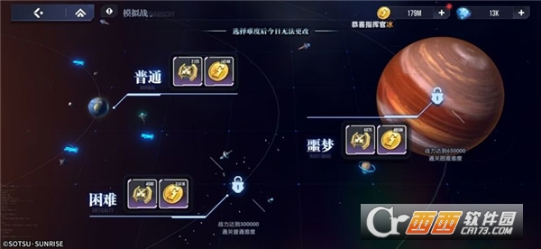 模擬戰:屬于闖關類PVP玩法,玩家需單獨保存一套陣容用于挑戰。玩法中的敵人均為其他玩家,分為三個難度,每個難度有15關。玩家每日可選擇一個難度挑戰,通過關卡可獲獎勵,每3關后有寶箱,第15關后的大寶箱獎勵更為豐厚。玩家每次戰斗后機體的耐久值和能量值會繼承到下一場戰斗。