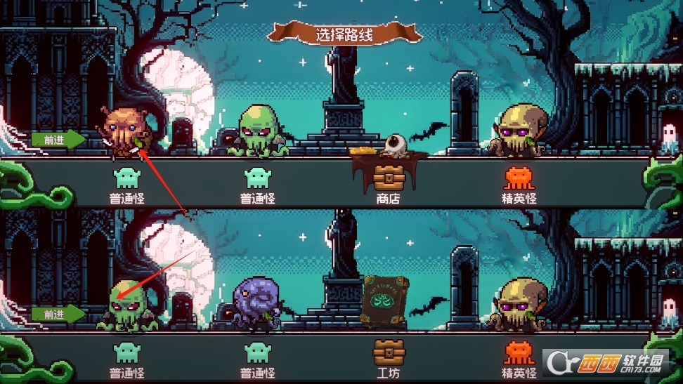 每一局的開局和殺戮尖塔一樣,玩家們都可以選擇帶著一種加成進入游戲中