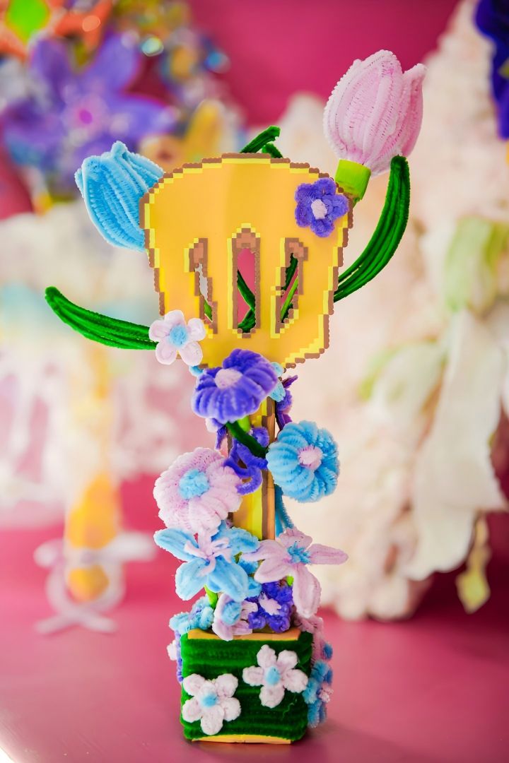 另一位玩家的作品則充滿了溫潤(rùn)的家國(guó)情懷。她帶來了一把由青花瓷片拼湊的“青花瓷”紋樣的鏟子,圖案靈感來源于我國(guó)傳統(tǒng)文化青花瓷。她分享道,“電競(jìng)的活力與青花瓷的古典在這里相遇,就像我今天在這里,把一份文化的記憶,交到一位新朋友手中。” 這把鏟子不僅是一件物品,更成了一份流動(dòng)的、承載著文化溫度的情感信物。